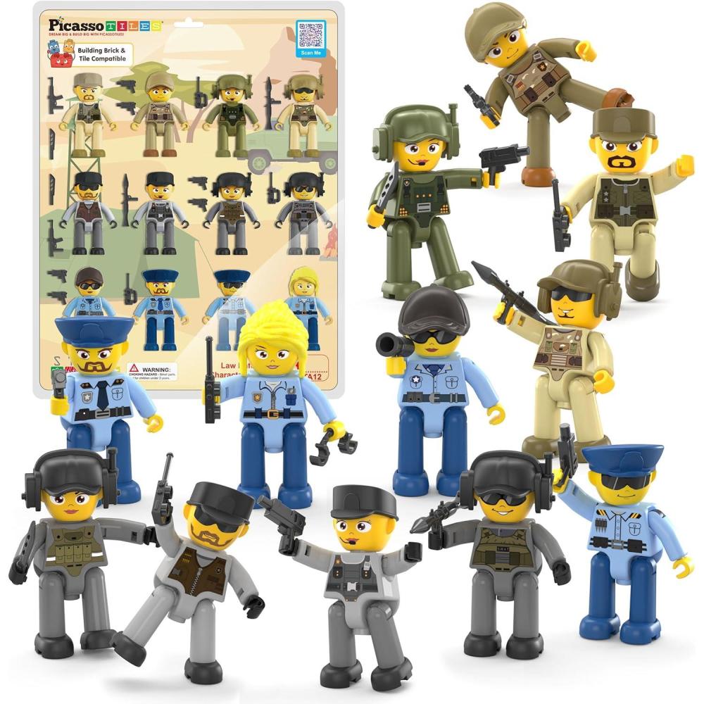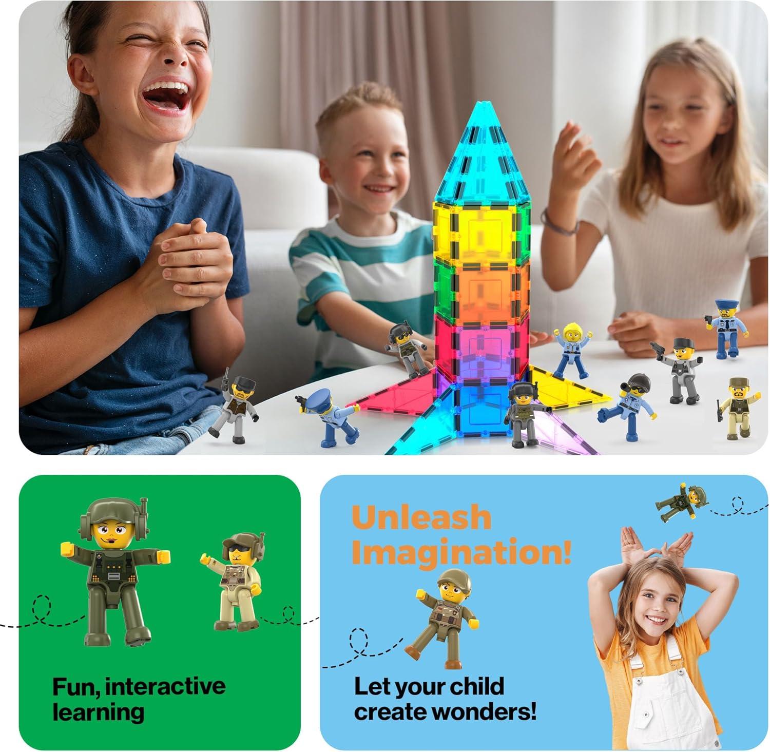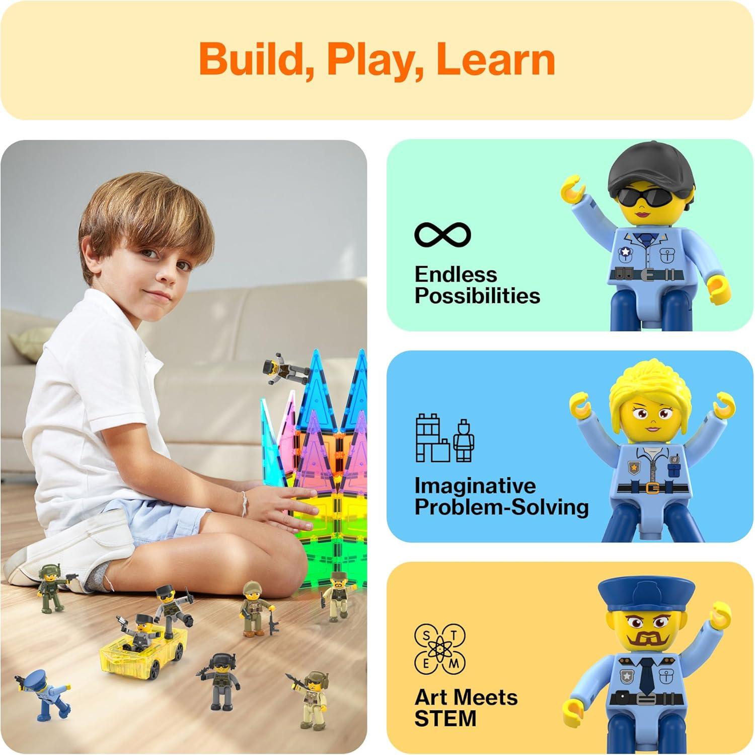 Picasso Toys Magnetic Action Figures Character Law Enforcement for Construction Building Block Tiles Toy Set Magnet Expansion Variety Pack Educational STEM Learning Kit Pretend Playset PTA12(Law Enforcement)