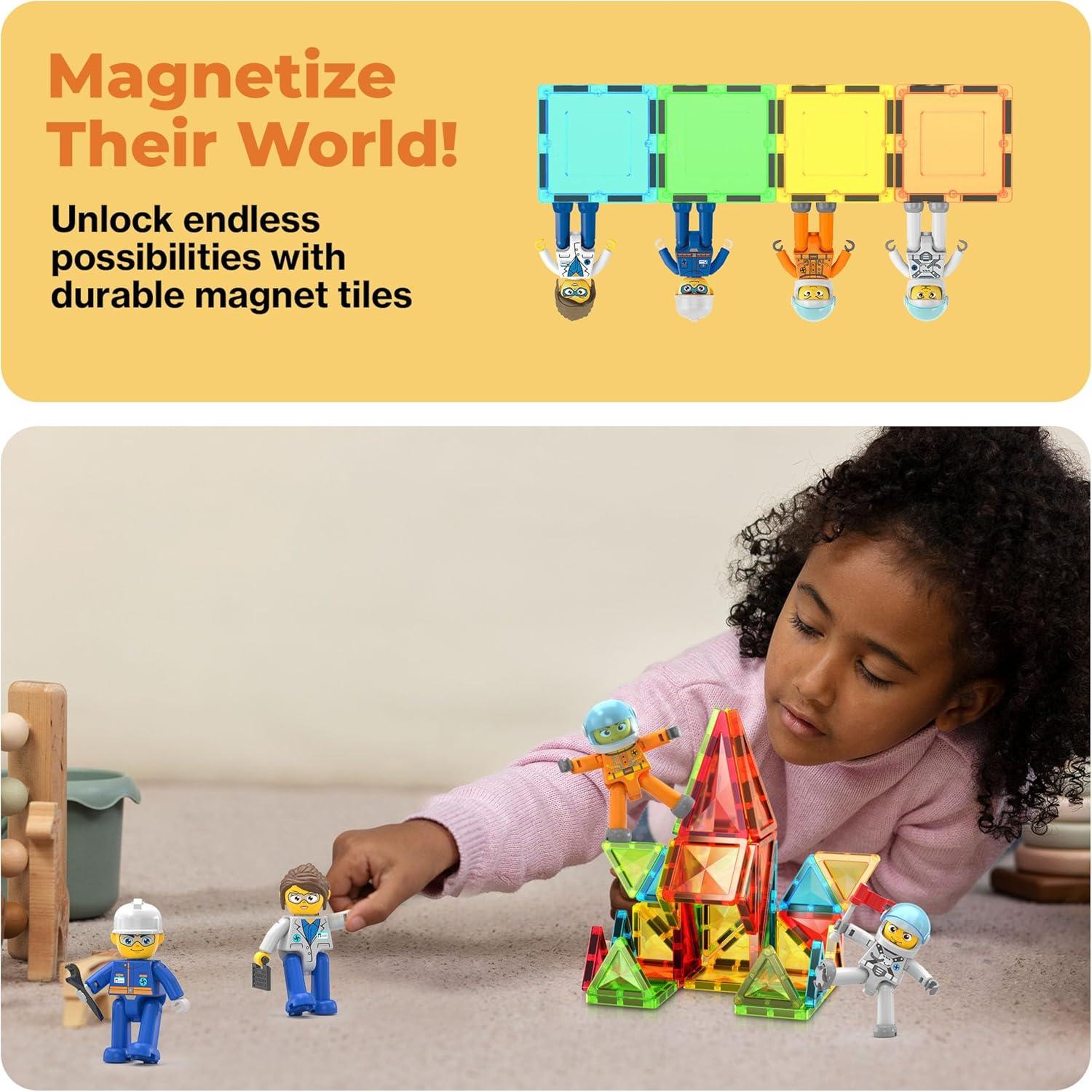 Picasso Toys Magnetic Action Figures Character Law Enforcement for Construction Building Block Tiles Toy Set Magnet Expansion Variety Pack Educational STEM Learning Kit Pretend Playset PTA12(Multi-color)
