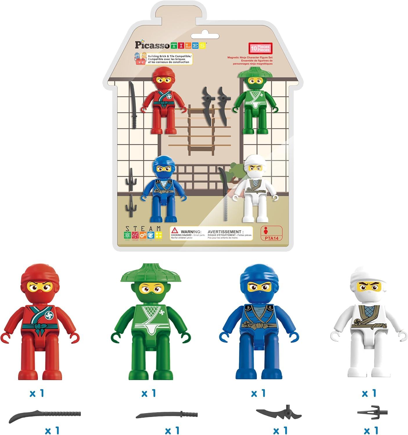 Picasso Toys Magnetic Action Figures Character Law Enforcement for Construction Building Block Tiles Toy Set Magnet Expansion Variety Pack Educational STEM Learning Kit Pretend Playset PTA12(Ninja)