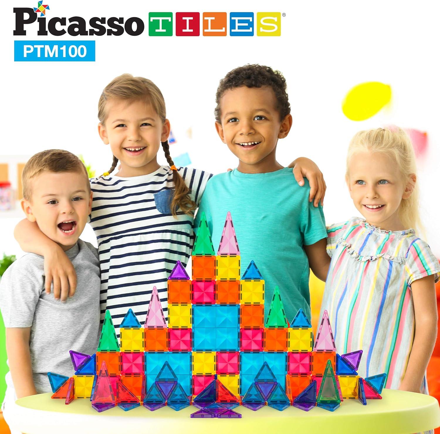 PicassoTiles 100 PC Magnetic Mini Tiles + Carry Case: STEAM Educational Playset for Kids Includes Travel Storage Organizer – Fun Learning, Construction, Engineering, and Sensory Development Gift Idea