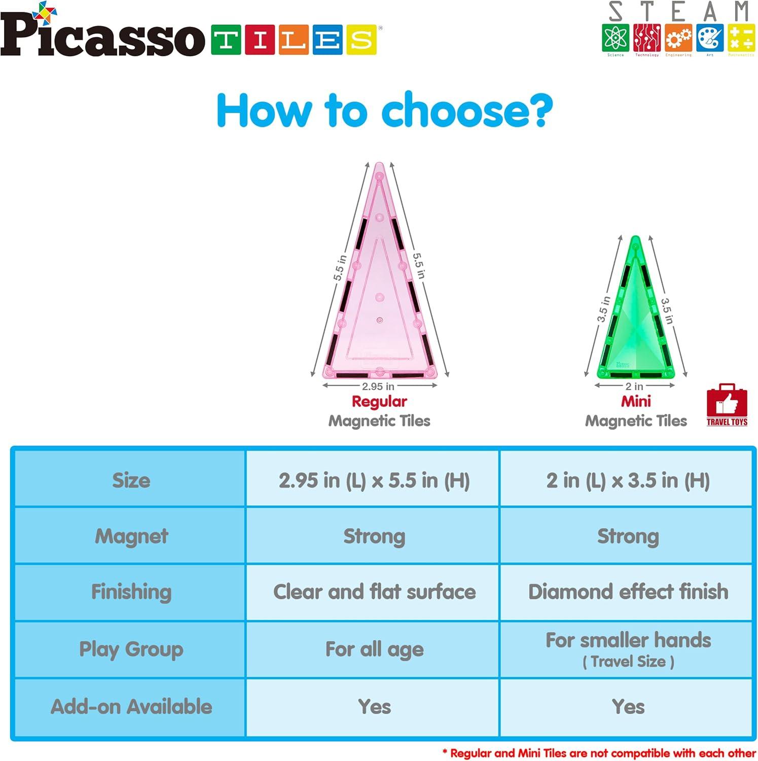 COMPATIBLE WITH OTHER SETS: Expand your building experience by combining PicassoTiles nano mini magnetic tiles with other Picasso full-sized playsets. The mix of small and large pieces enables new design possibilities, letting kids create more detailed and imaginative structures. Lightweight and travel friendly, this versatile set easily integrates with any full-sized magnet tile collection for creative play anytime, anywhere.