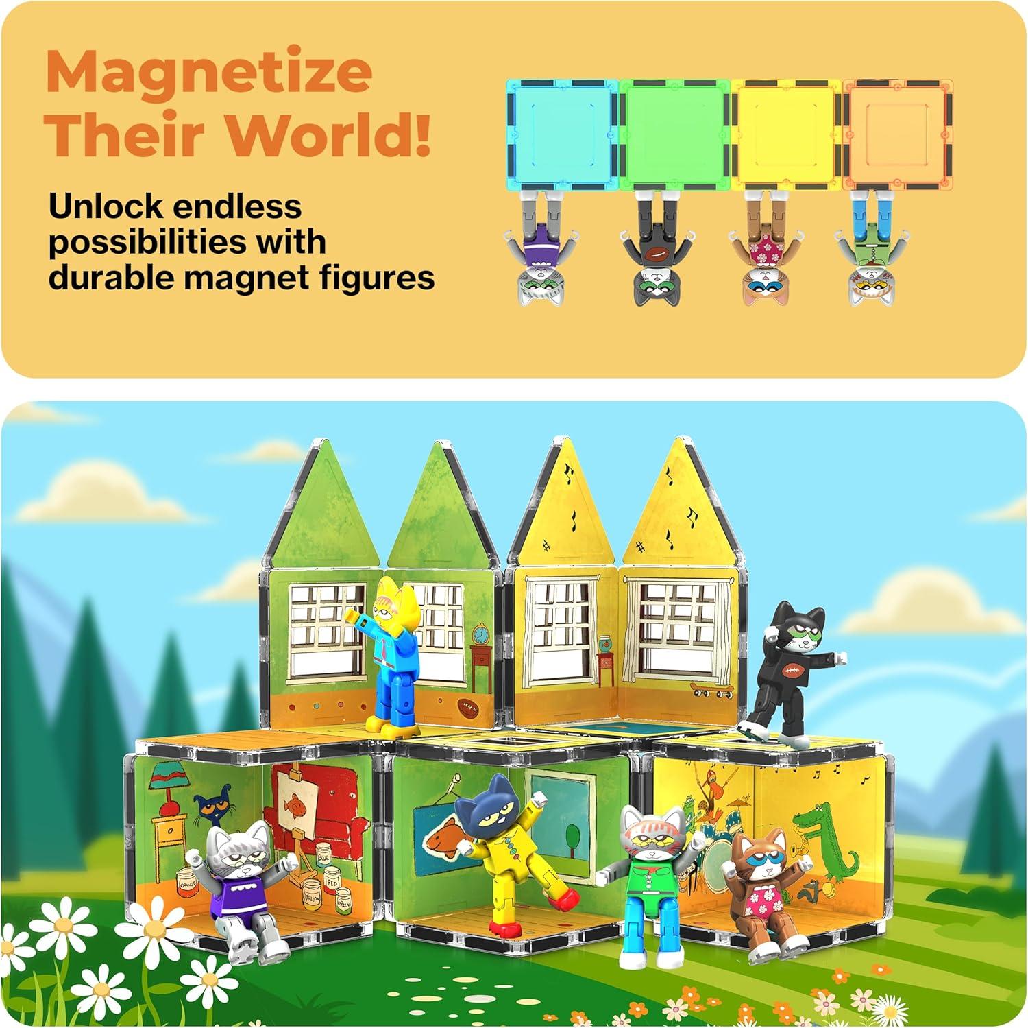 DREAM BIG & BUILD BIG: Discover endless creativity with PicassoTiles' Pete the Cat themed magnet tile construction building blocks. This set includes exterior and interior double sided printing magnet structural parts. Encourage storytelling, pretend play and imagination with this detailed printed magnetic toy construction playset. Perfect for toddlers, teenagers, and adults.