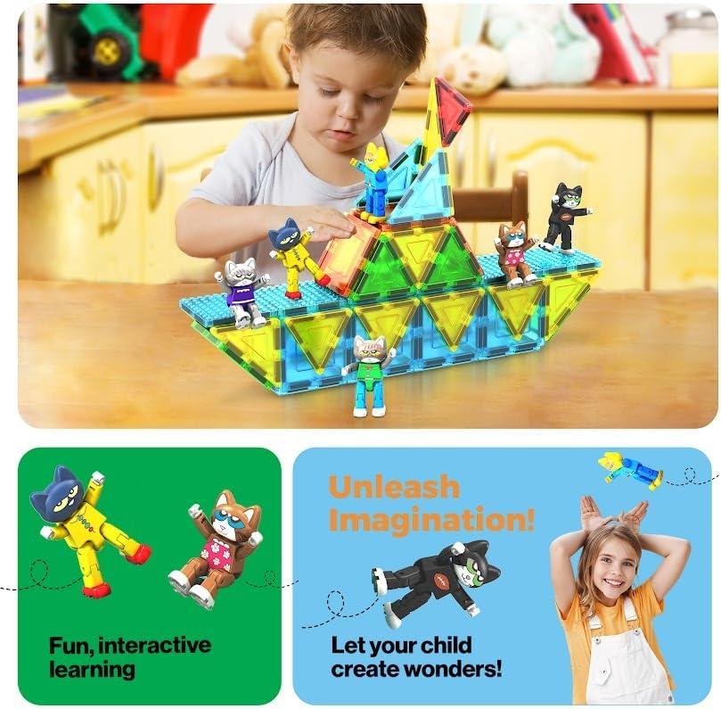 VERSATILE PLAYSET: This magnetic Pete the Cat playset isn't just for kids; adults can benefit too. Like puzzles, magnetic STEM toys challenge spatial reasoning, problem-solving, and creativity, keeping minds sharp and agile. It fosters family bonding, encourages collaborative play, and offers an engaging platform for interactive learning and exploration at any age.