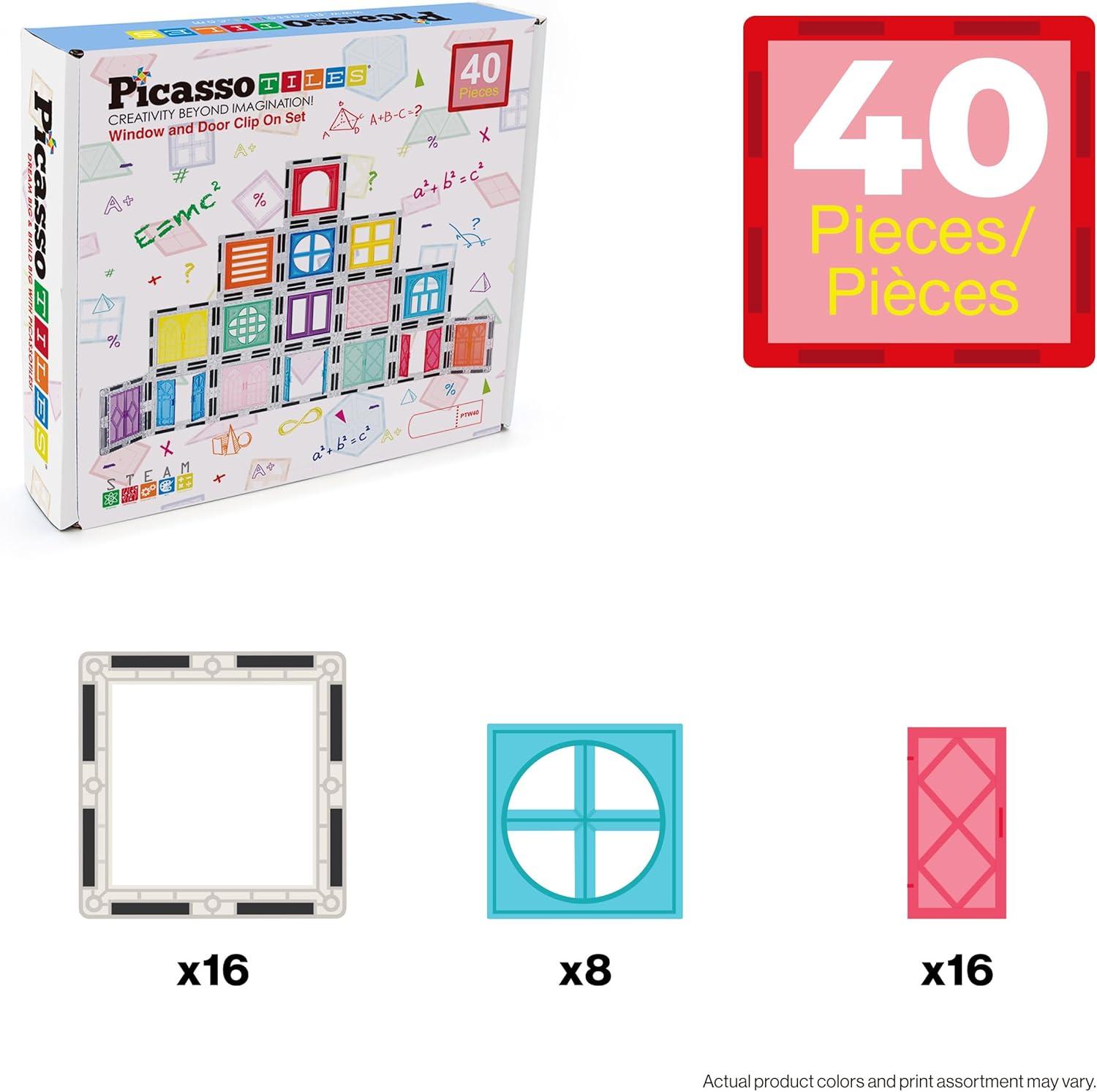 PicassoTiles Window and Door Clip On Magnetic Blocks Magnet Tiles Magnets Building Tile Construction Toy Set STEM Education Toys Learning Kit Stacking Block Playset Boys & Girls Age 3+ PT30(Multicolored)